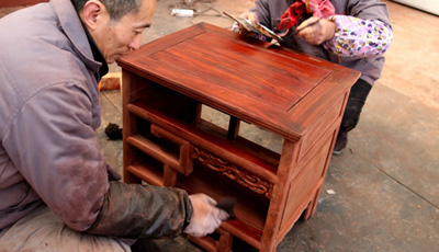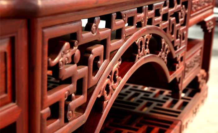 流程三雕刻工序 為了讓紅木家具看上去更美觀,在木工工序完成之后一般都會用一些或簡單或復(fù)雜的雕花來進(jìn)行裝飾,也就是行業(yè)中所說的雕刻紋飾。雕刻紋飾必須在“認(rèn)榫”完成后進(jìn)行,因為“認(rèn)榫”時需要修整,如果先做好雕花再開榫,紋理很難保證雕花部件都在同一平面上,而此時為了保證雕花...
